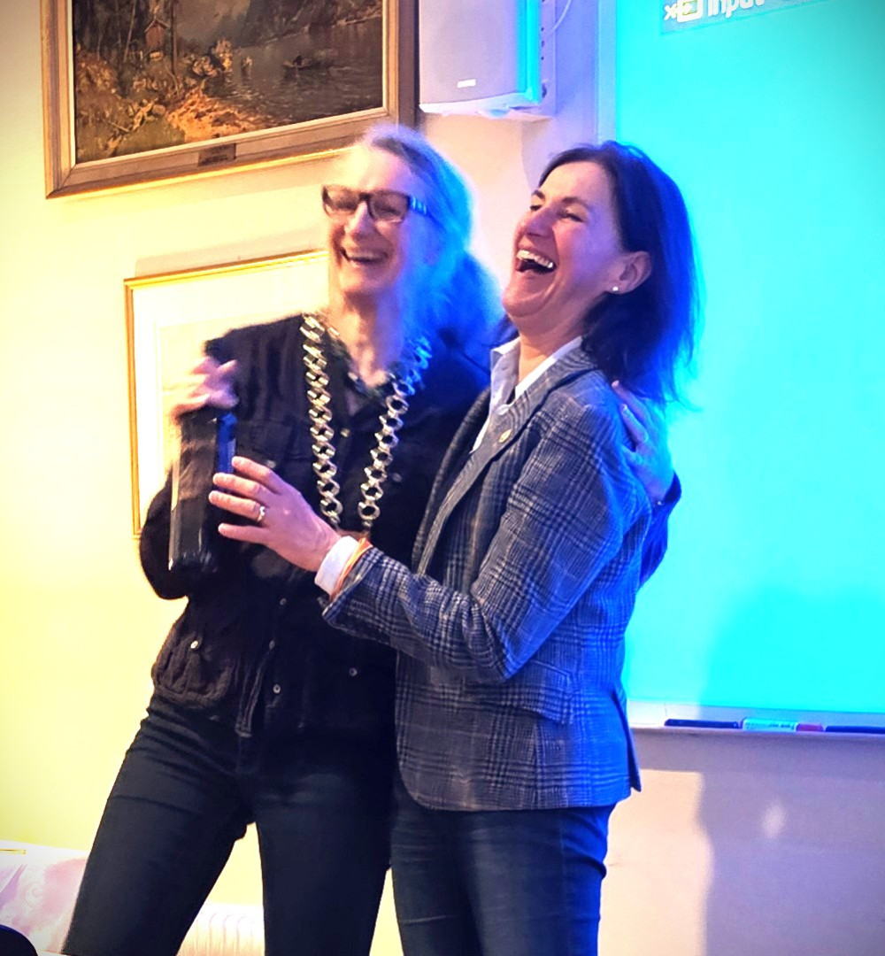 Latteren satt løst da Bettina fikk overrakt Rotary-vinen. Hun poengterte nemlig i sitt foredrag at alkohol og røyk er noe man definitivt bør velge bort om man vil redusere risiko for demens☺️. Tekst og bilder tok Mona Mekki seg av.